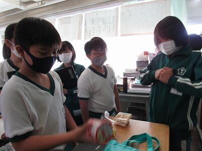 授業中に活用した実物資料に興味津々ですね。