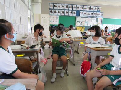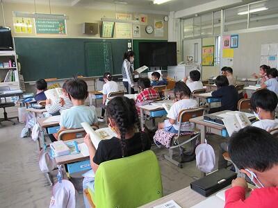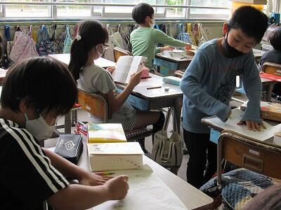◆図書室では、4年生が「幸松タイム」で古利根川の自然について探究しています。