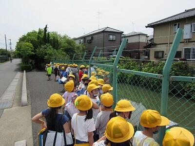 ◆休み時間に、3年生の教室前に来きいます。幼虫を観察中です。