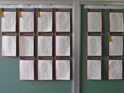 ◆1年生は、クラス目標に自分たちの似顔絵を貼り付けようとしています。
