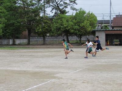 ◆4年生がサッカーゲームに夢中です。チームの全員がシュートするというルールを達成しようとしています。