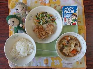 今日は兵庫県の郷土料理です。ばち汁のばちは、そうめんの両端を切り落とした部分のことです。その形が三味線を弾くのに使うばちに似ていたことからこの名前がついたと言われています。また、兵庫県はたこの水揚げ量が北海道についで全国第2位で、そのたこを使ったたこめしを作りました。