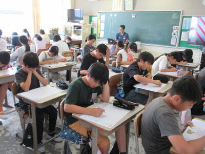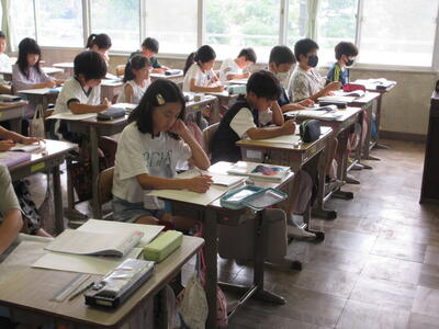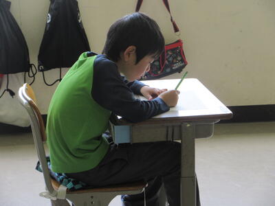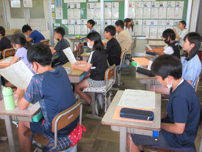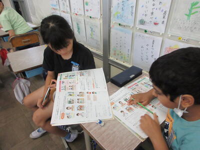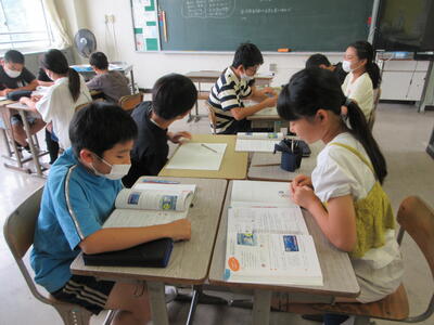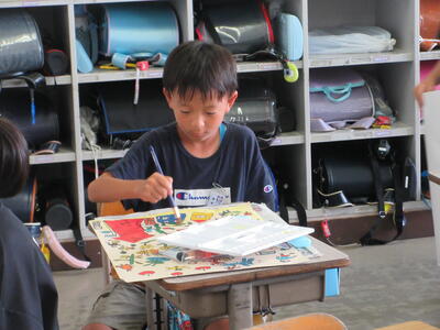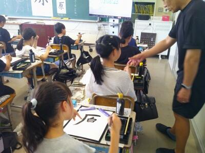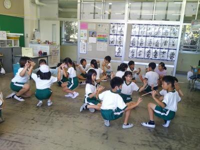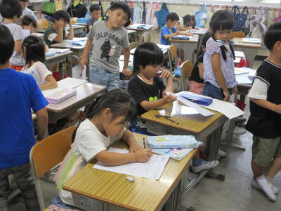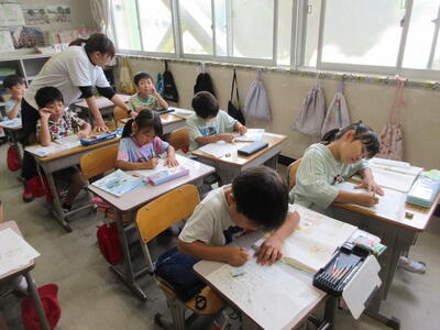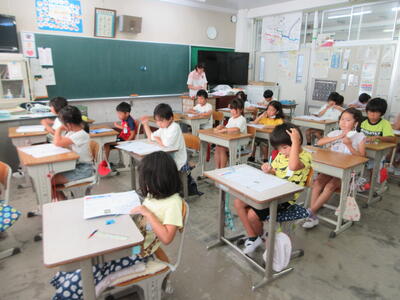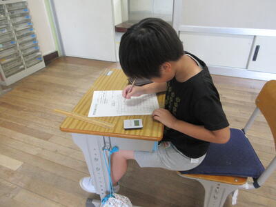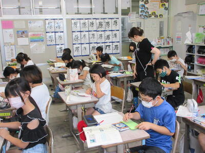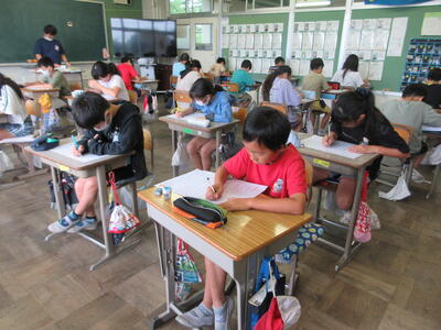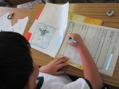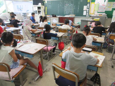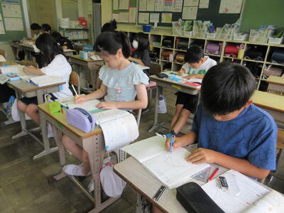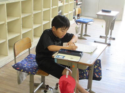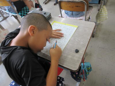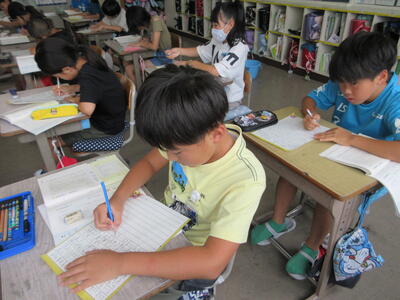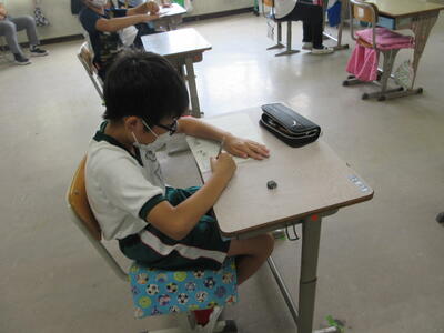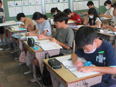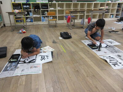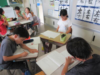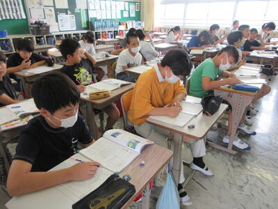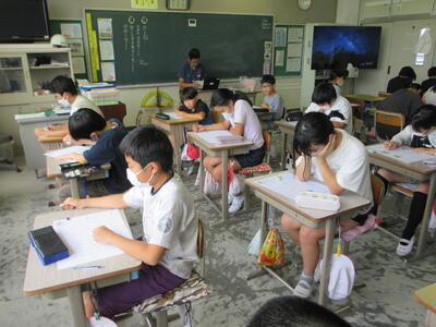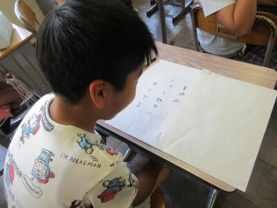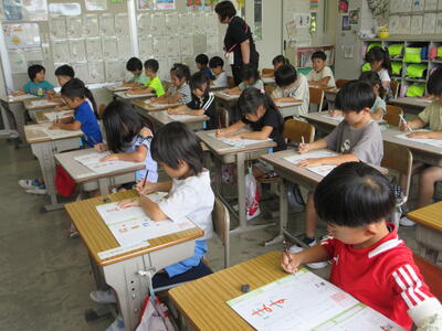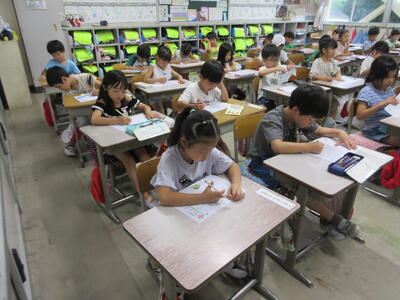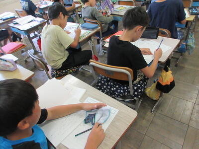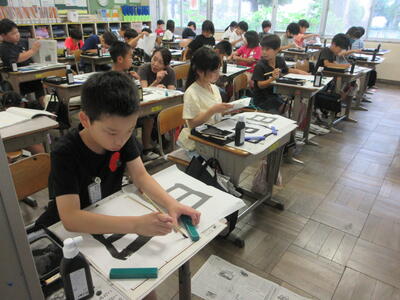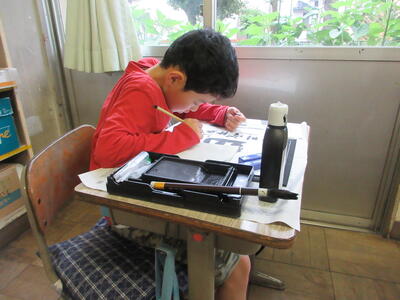 ★習字の時間では「土」を集中して書いていました。3年生から始まった習字の授業にも慣れてきました。
