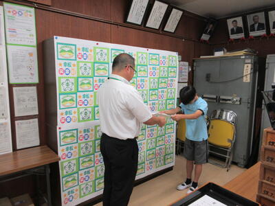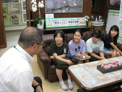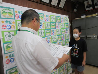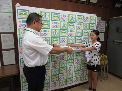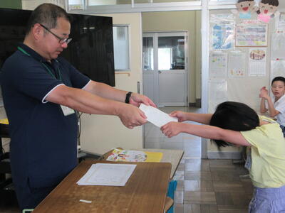 ★職員が、校長室の机の真ん中にひまわりを飾ってくれました。ひまわりの花言葉は「光輝」です。夏休みも、幸松っ子が家庭・地域で光が輝いてほしいと思います。
