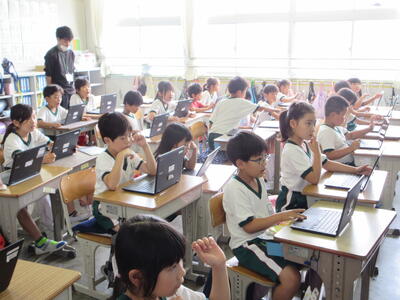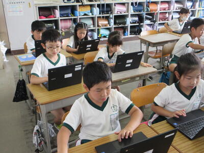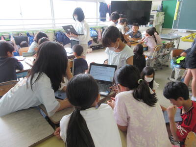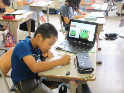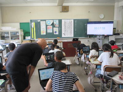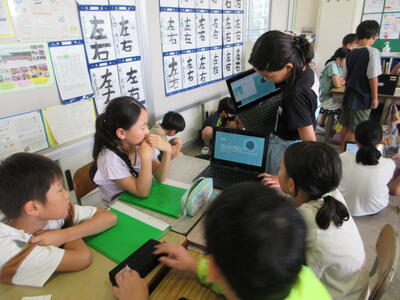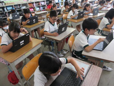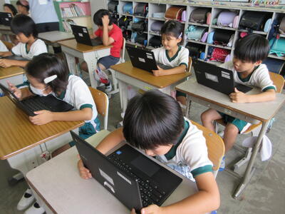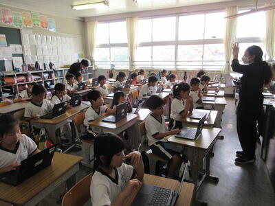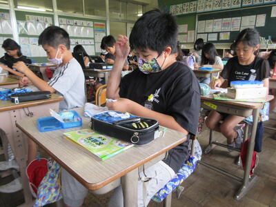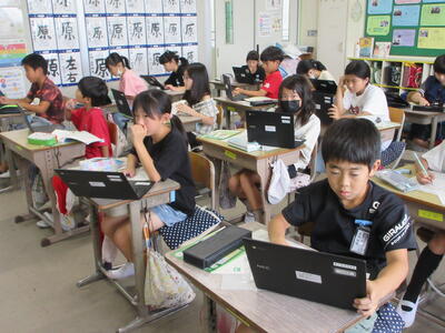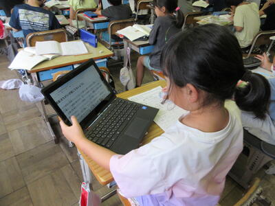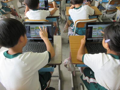 ★国語の授業では、学んだ内容をタブレットを使って確めていました。タブレット操作にも慣れてきました。