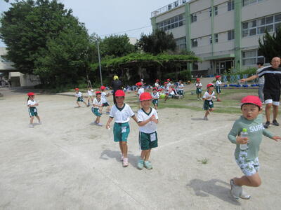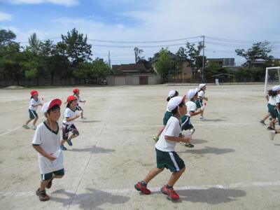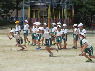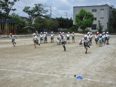 ★とても暑い中、熱中症に気をつけながら、水分補給を細目に行いリレーの授業をがんばっていました。