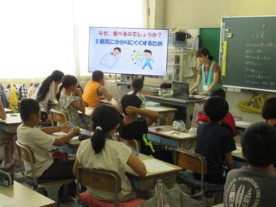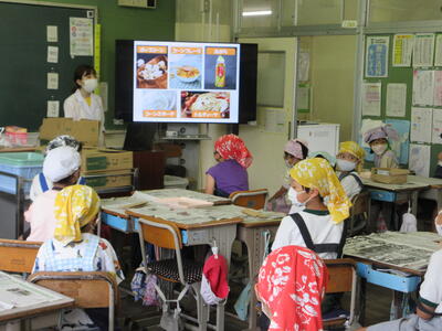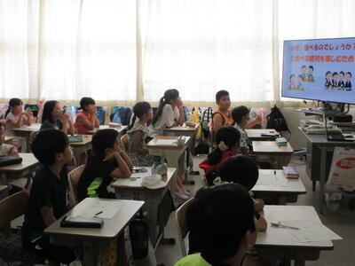 写真や映像等を見せていただきながら、虫歯予防等について自分でできることを教えていただきました。