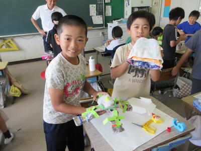 ★図工で作った紙けん玉で遊んでいました。自分で作ったオリジナル紙けん玉で遊ぶのはとても楽しそうでした。