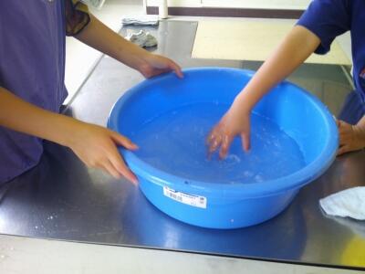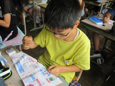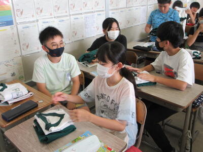 ★家庭科の時間で玉結びにチャレンジしていました。最初は難しかったようですが、少しずつ慣れてきました。