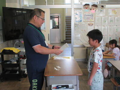 ★夏休みの過ごし方についてもよく聞いていました。事故なし、けがなし、危険な遊びをしないこと等のお話がありました。自転車を乗るときはヘルメットをかぶることの確認もありました。