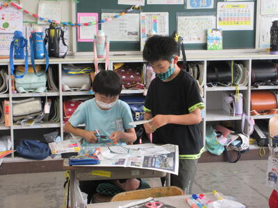 ★理科では、光合成と日光の関係の実験に向けての準備をしていました。