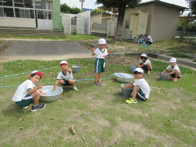 保護者の皆様、子どもが泥で汚れたものを御家庭に持ち帰ると思います。大変申し訳ありませんが、ご理解・ご対応の程、よろしくお願いします。