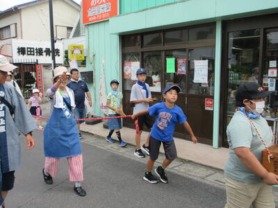 ★途中、農家の方のご配慮で、希望者は田んぼを走ることができました。田んぼ競争等、よくニュースに出ていますね。農家の方は「田んぼを走る経験は、もう一生ないかもしれませんね」とおっしゃっていました。みんな最高の笑顔で走っています。とても楽しそうです。(この後が大変そうですが)