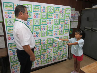 校長先生からは、〇幸松っ子が自分色に輝いたこと 〇幸松小のあいさつ、無言清掃がとてもよくなったこと 〇夏休みについて(・自分の命を守ること・学習面、生活面で何か目標を決めて続けてやってみること・パリオリンピックを見て、自分の心の栄養にすること などのお話がありました。最後に校長先生が1学期がんばった幸松っ子に寒いダジャレのプレゼントをしてみんなを涼しくしてくださいました。「あつい!あつい!あーついに夏休み。楽しく安全な夏休みを過ごしましょう。」 幸松っ子は笑顔になり拍手をしていました。