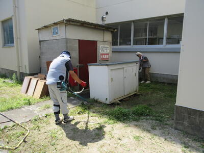 ★用務員さんと校務員さんが校舎周辺の草取りをしてくださっていました。いつも子どもたちのために環境整備に努めてくださっています。