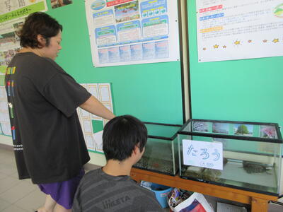 ★いつもは、飼育園芸委員会の児童が世話をしてくれている「タロウ」と「メダカ」の世話は担当の先生がしてくれています。タロウとメダカは幸松っ子と会えなくてさびしそうです。