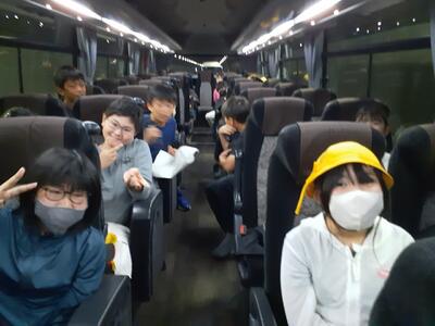 ★国会見学が終わり現在バスの中でランチタイムです。お家の方に作っていただいたお弁当をとても美味しそうに食べています。朝早くのお弁当作りありがとうございました。この後は科学技術館でグループ行動てす。