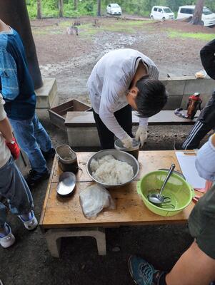 雨もやんできました 完成の班もでてきました 美味しく食べられそうです
