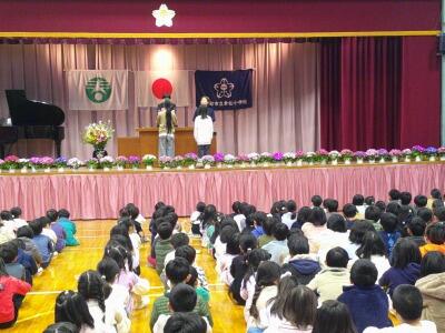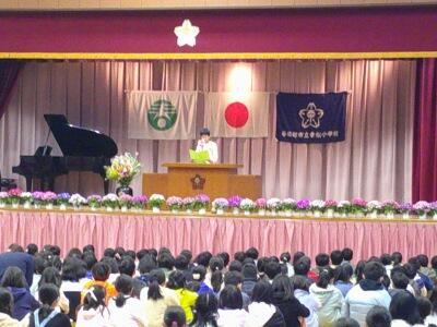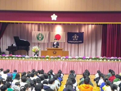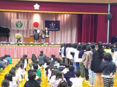 校長先生の話、児童代表の言葉(5年生)、春休みの過ごし方、そして