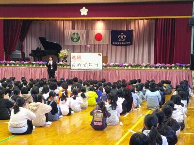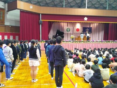 国歌や校歌を歌う時の声や人の話を聞くときの姿勢が1年間の成長を感じました。