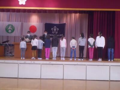 オンライン表彰 投稿日時 : 2020/12/24 幸松小学校管理者 カテゴリ: 体育館で、各種美術展や科学展、持久走大会などの表彰が行われました。 約20名の児童に、校長先生から賞状が手渡されました。 その様子は、Zoomで各教室に配信されました。 他の子の表彰を待つ態度も立派でした。 {{options.likeCount}} {{options.likeCount}}