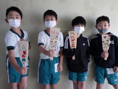 3年生が羽子板の絵付けを行いました。