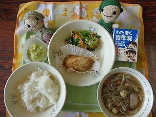 今日は宮城県の郷土料理です。「おくずかけ」は、何種類かの野菜や油揚げ・玉ふなどを干ししいたけのもどし汁とだし汁で煮込み、温麺を加えてとろみをつけた汁物です。また、「ずんだもち」は、枝豆で作ったあんをもちにかけたものです。