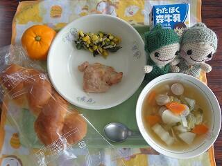 2月2日 投稿日時 : 2021/02/02 幸松小学校管理者 カテゴリ: ツイストパン 牛乳 ガーリックバターチキン 青菜とベーコンとコーンの炒め物 野菜のコンソメスープ みかん 【6年生が考えた献立】 今日は6年生が考えた『栄養バランス味バランスバッチリこんだて』です。 考えるときに工夫したことは、 ①いろどりをよくした ②みんなが食べやすい味にした ③食材がかぶらないようにした ④油とビタミンを多くし、他の栄養素の吸収をよくした です。 栄養バランスもいろどりもよく、すばらしい献立を考えることができました。