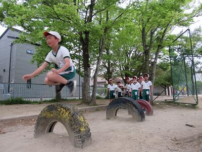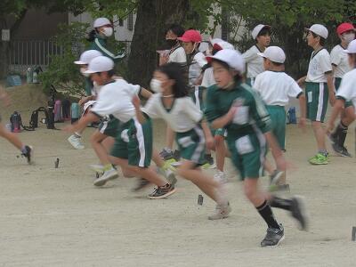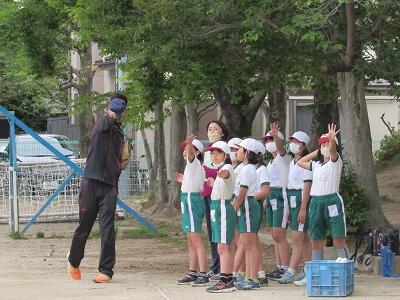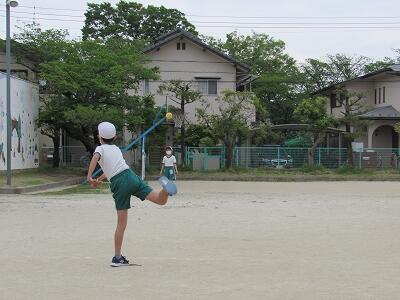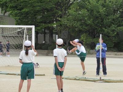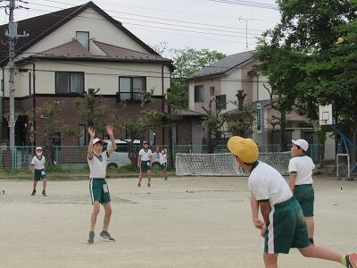校庭の奥では、ボール投げのグループが遠投を始めたよ。