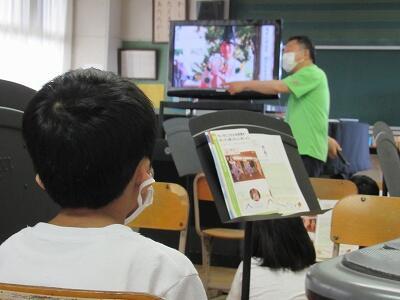◆ミュージックルーム(音楽室)では、4年生が「こきりこ節」を鑑賞中!!