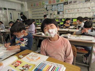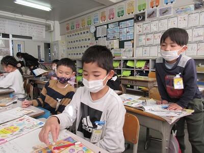 ◆1年生の生活科は、お世話になった人に「感謝のカード」を書いているよ。