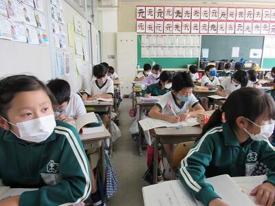 ◆校内で唯一、体育着だけの薄着をしている5年生の教室。