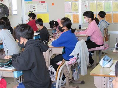 2学期のまとめの時期に、笑顔で学習し、この集中力には感心です。