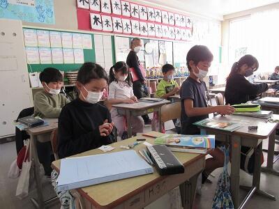 ◆3年生の外国語活動は、名前のイニシャルを交換し合いっているよ。