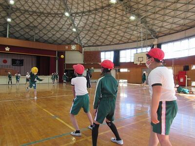 ◆4年生は、ソフトバレーボールのサーブとレシーブを練習中!!