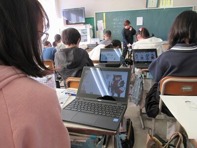 パソコン検索で絵に表現する題材を探し、参考にしているね。