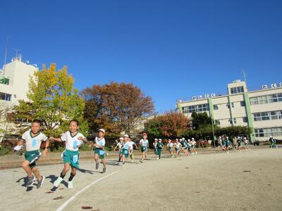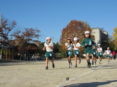 元気よく3年生が、外側のトラックの持久走をスタート!!