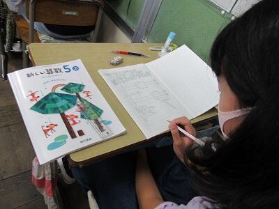 自力解決のあとは、考えを交流していきます。5年生も学び合いは得意技!!