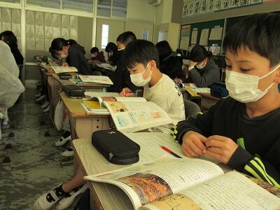 ◆南校舎も、元気な4年生が漢字の復習を始めているよ。