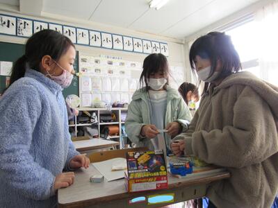 ◆元気な3年生の教室では、理科で電流を通すものと通さないものを実験で確かめているよ。