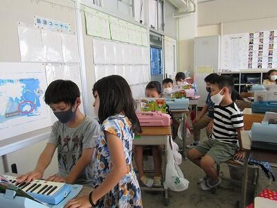 ◆こちらの2年生は、鍵盤ハーモニカでリズムを取っているね。