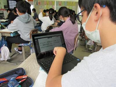 全員の考えが一度に見られる機能を使って、大画面で共有です。