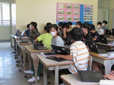 こちらの教室では、パソコンで検索をしながら、絵を描いているよ。