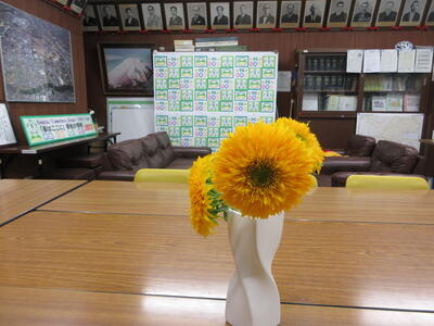 ★職員が、校長室の机の真ん中にひまわりを飾ってくれました。ひまわりの花言葉は「光輝」です。夏休みも、幸松っ子が家庭・地域で光が輝いてほしいと思います。