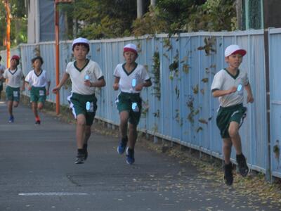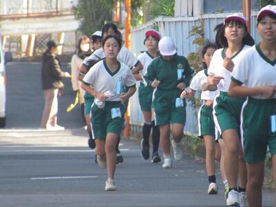 学校の周りの2周目、ゴール目指して素晴らしい走り。