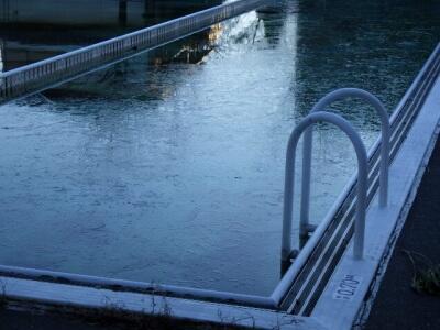 プールでは木の枝や落ち葉が氷づけになっていました。