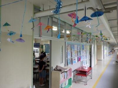 3年生の教室の廊下側に、図工の作品が掲示してあります。