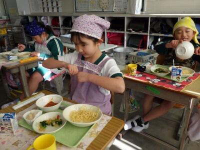給食が始まって1週間がたちました。みんな給食の時間を楽しみにしています。