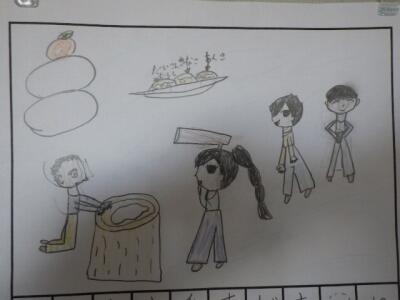 今日の朝の自分たちの写真を見て、短い文を作ります。