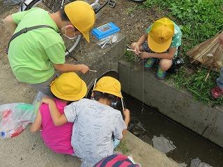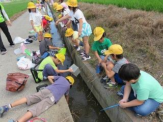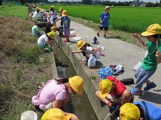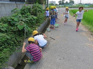 今日は2年生が生活科の校外学習でザリガニ釣りに出かけました。
